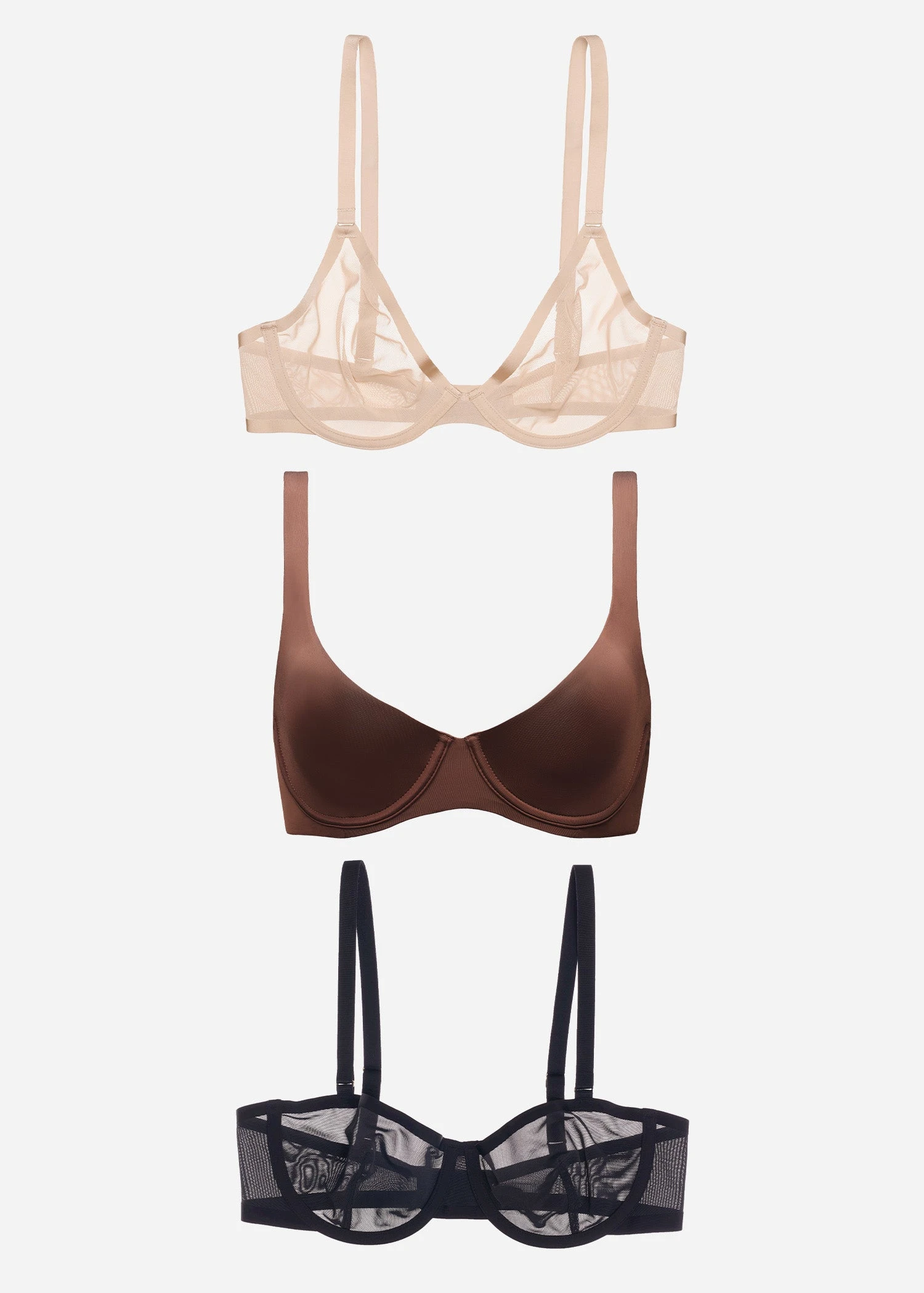Our Best Sellers three-pack includes the Plunge, Balconette, and Scoop bras. Made from our signature, sheer Power Mesh and incredibly soft Micro, they offer a range of minimal, medium, and opaque coverage. Choose your favorite color from our selection.