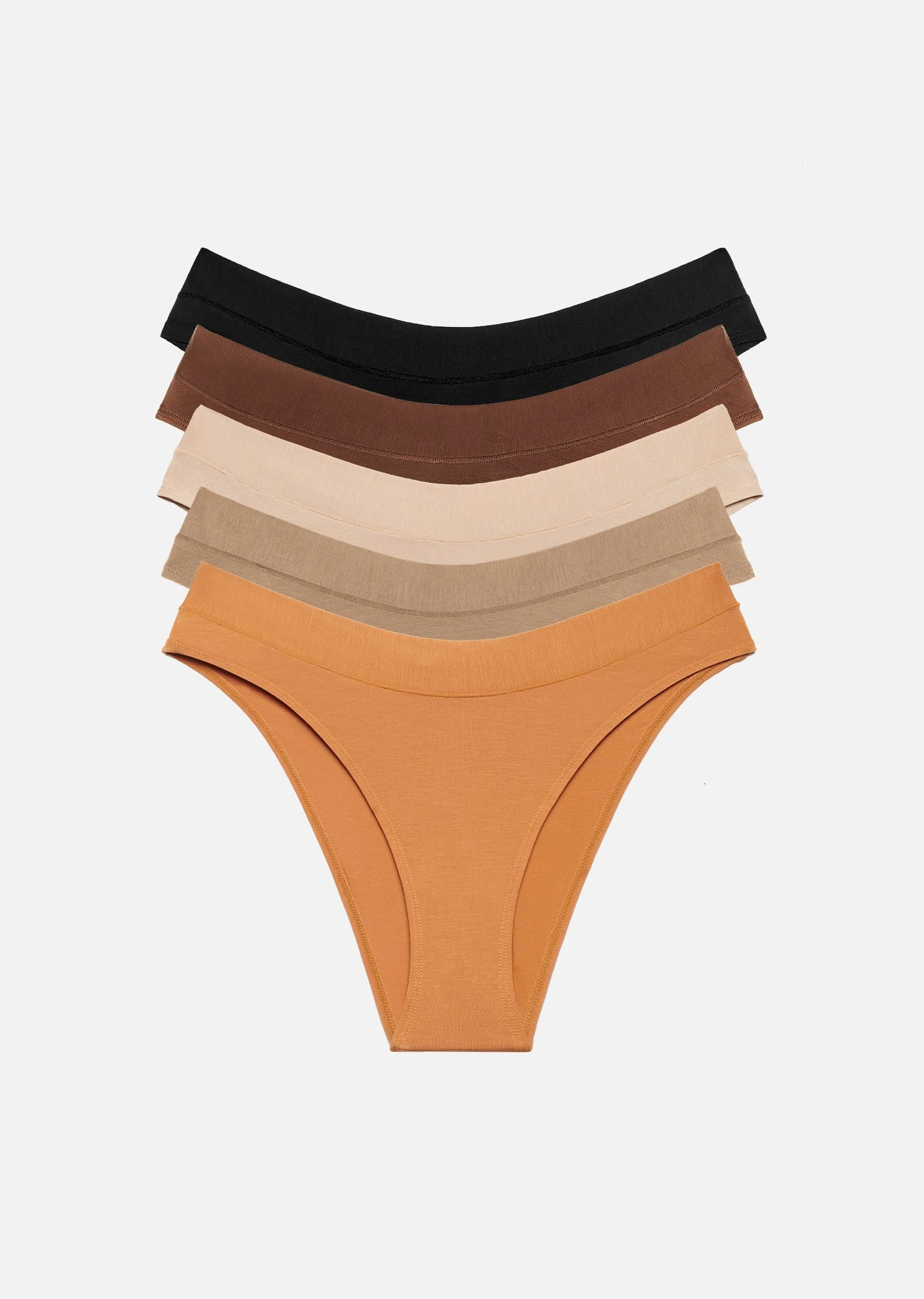 - Includes five pairs of the Bikini (Caramel, Taupe, Sand, Black, Espresso)