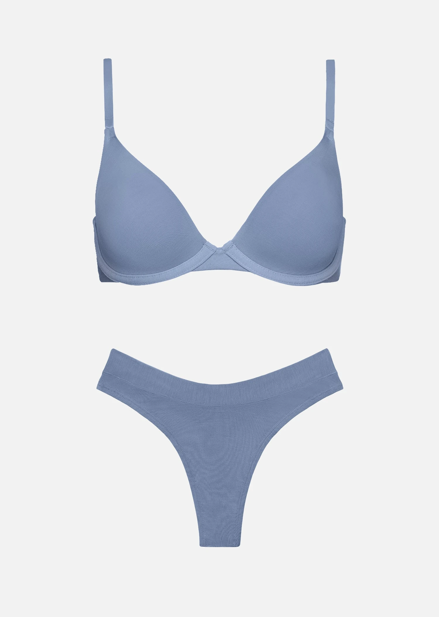 This set features the Modal Plunge and Thong. The bold lines and soft, sexy support of the Modal Plunge complements the minimal coverage of the Thong for a modern and comfortable first layer.